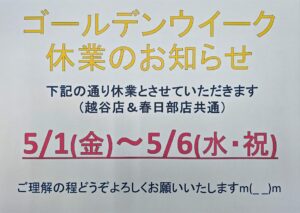 アーミーフィットネスジムも5/1~5/6までGW休業を頂きます。