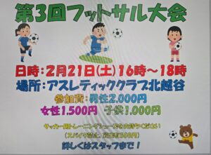 早速2月21日(土)に「第3回フットサル大会」を開催いたします☆