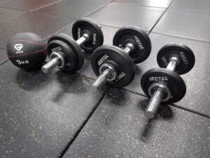 もう既に引き取りが決まった器具(プライオボックスとケトルベル、スクワットラック、バーベルセット)もありますが、特にダンベル・メディシンボール等は、置き場所に困らず使い勝手のいい器具です。